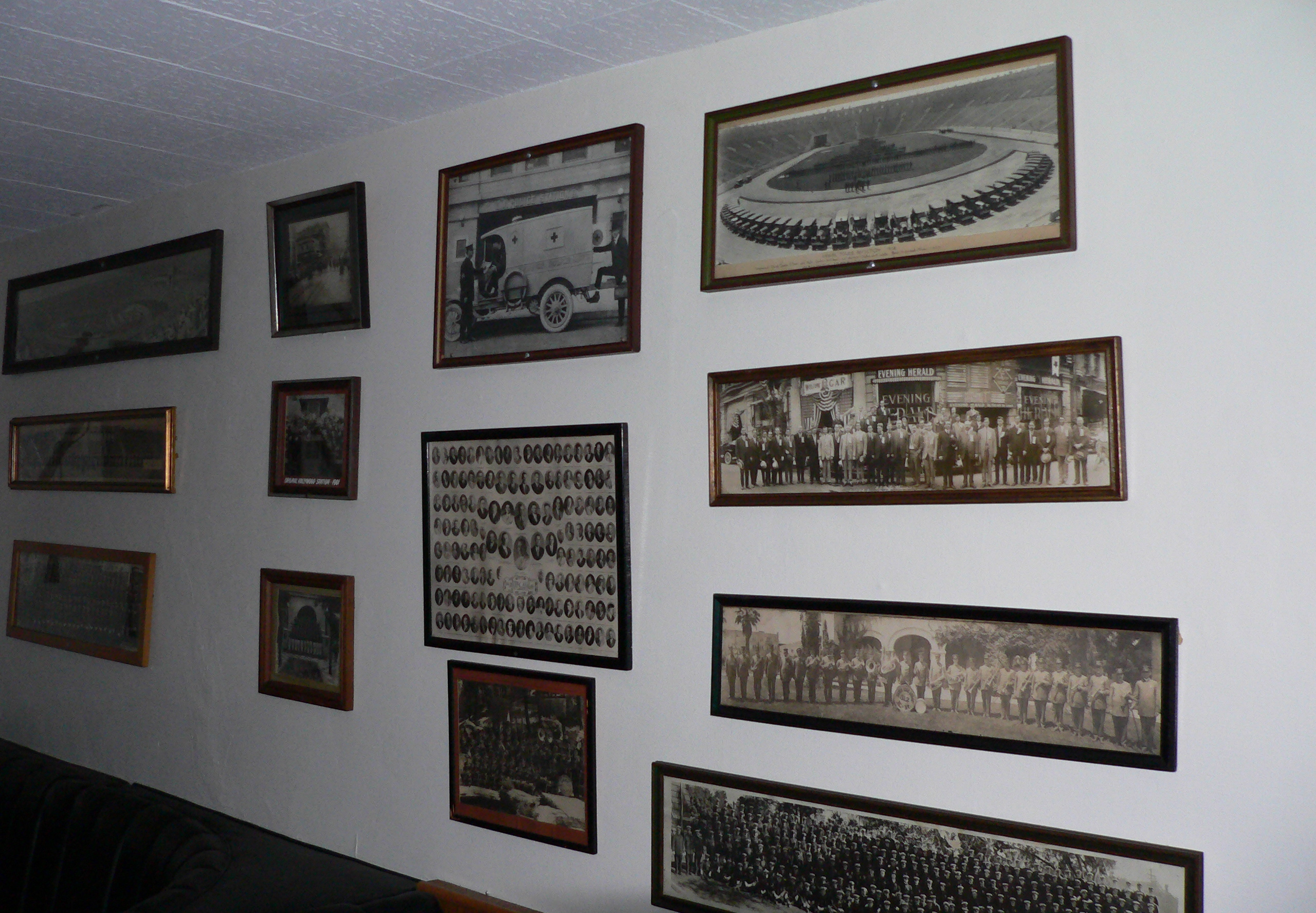 Though I was clearly not a regular, everyone made me feel as if I was. I chatted a bit with the waitress who joked (though serious), “This is safest place to eat in Los Angeles.” She told me how this building was moved for the 1932 Olympics and the shooting range was used for Olympic competition. It was touching to hear her reflect on the café’s closing…to hear her say wistfully “There’s a lot of history in these walls.” She didn’t say “on these walls” but that applies here too. I tried to photograph some of the memorabilia, aiming my camera at the walls in the dark. The back room was even darker. I could hear Spanish-speaking voices as I attempted to not bump into any furniture moving around the room.