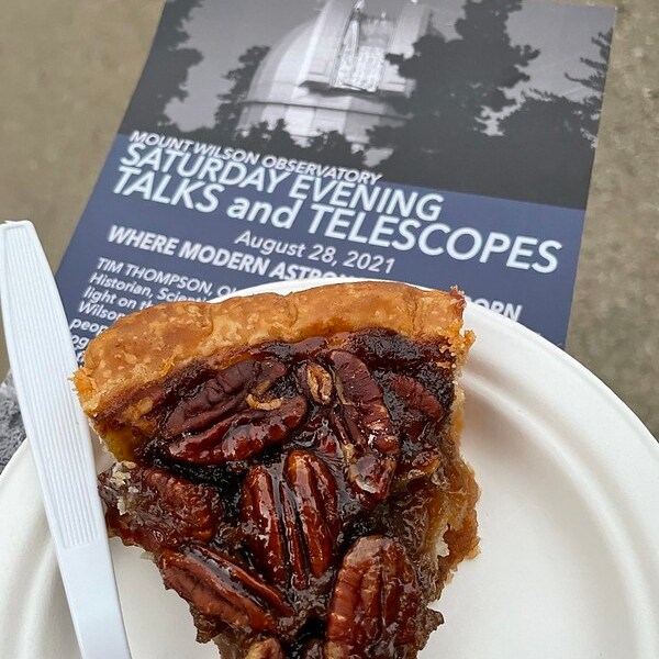 During September 2020, the Bobcat Fire came dangerously close to the Mt. Wilson Observatory, which I watched nightly on the Mt. Wilson webcams. Once the fire was over, I vowed to visit as soon as the observatory re-opened to the public. Every time I’m up there, I just marvel/imagine what it must’ve been like for George Ellery Hale to coordinate the seemingly-impossible effort of building an observatory on Mt. Wilson in the early 1900s. There have been so many more scientific advancements in other parts of Southern California, but I just really appreciate Mt. Wilson’s important early role in the region’s aerospace history. At the end of summer, the observatory hosted a series of public lectures and I eagerly attended the one in August (and also eagerly ate up this Pie N’ Burger pecan pie).