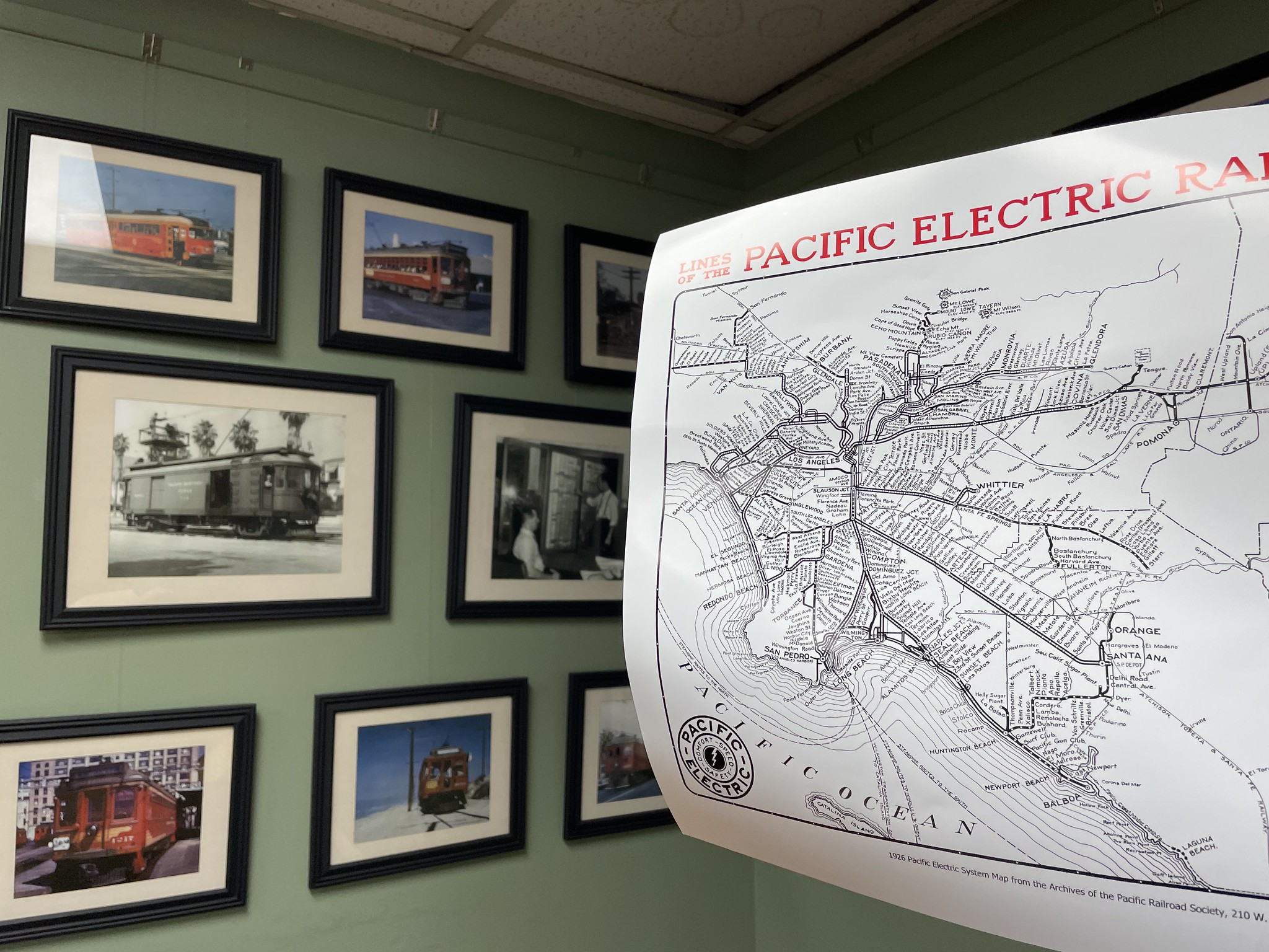 Also, a big thank you to the Pacific Railroad Museum in San Dimas!! I spent some time in the museum’s library pouring over their numerous books and photos on the topic. The photo at the top comes from the museum and features a Red Car on the La Rambla Line in San Pedro. In addition to a research library, railway enthusiasts will enjoy the display cases full of artifacts from our railroad past.