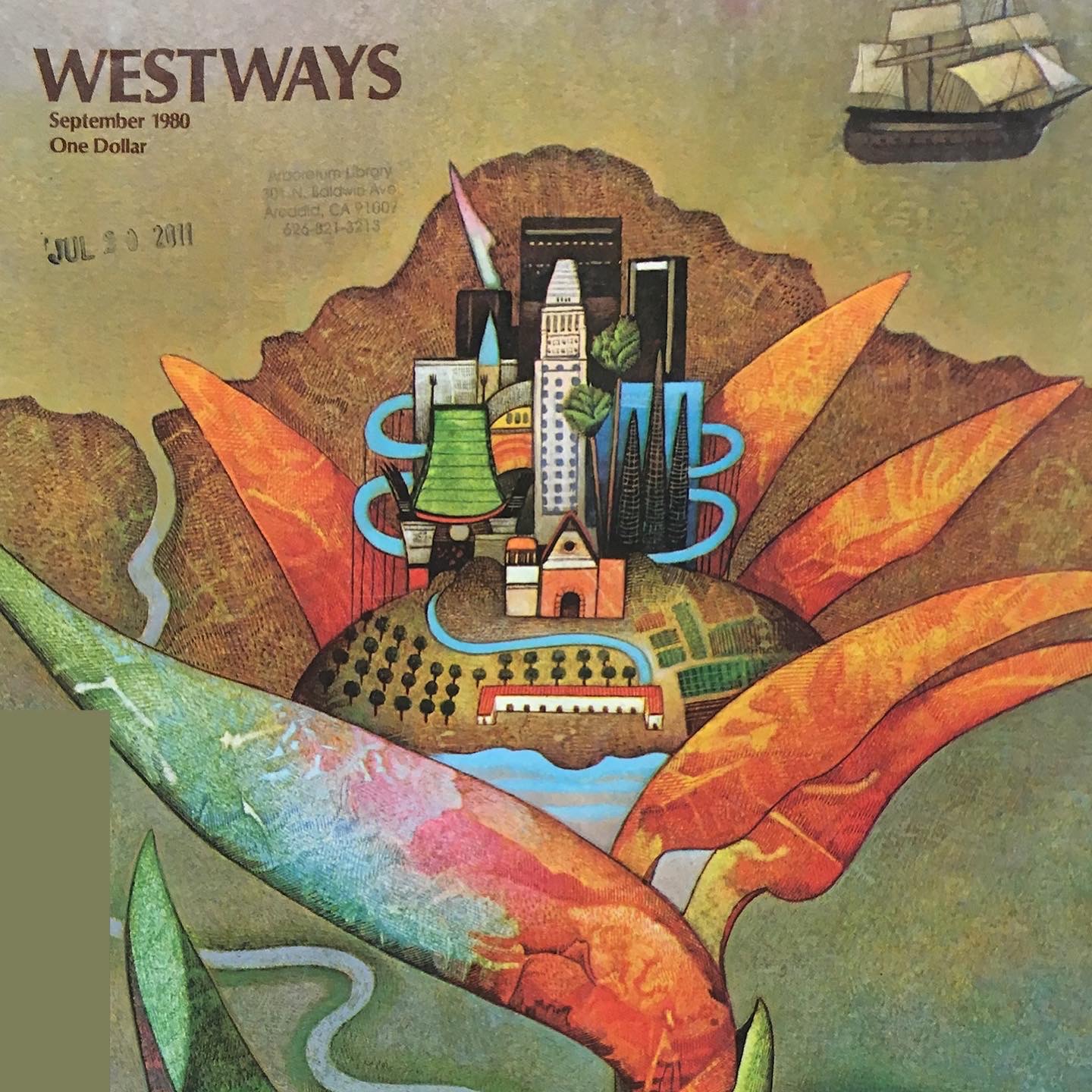 The Pobladores as featured in Judy Baca’s amazing “Great Wall of LA” (1970s).A close up of the “The Negro in California History – Exploration & Colonization” mural (1949) by artist Charles Alston. This mural was part of pair of amazing mid-century murals that hung in the historic Golden State Mutual Life Insurance Building. In these murals, artists Charles Alson and Hale Woodruff depicted the historically-overlooked contributions of African Americans to California’s history.“The Founding of Los Angeles” diorama (1931) at the Natural History Museum of Los Angeles County. The entrance of La Plaza de Cultura y Artes (2011). This 1980 Westways Magazine was full of articles about Los Angeles history as the city had kicked off its bicentennial celebration in 1980. For the city’s bicentennial, a number of prominent artists were commissioned to create commemorative posters for the 200th birthday of Los Angeles. With this week’s heatwave, I’m definitely feeling this one by Carlos Almaraz titled “Great L.A. Fire.”
