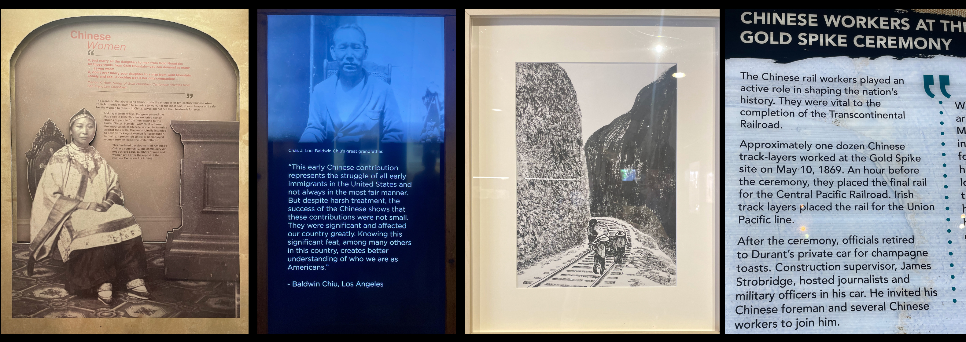 Appreciated all the displays throughout the musuem about the railroad’s Chinese workers — ranging from historic photos to quotes to artists’ present-day artwork — all in honor of those who endured the back-breaking work of building the Transcontinental Railroad. My photo collage above might be a bit hokey, but I wanted to remember all the different ways their stories were presented. Frankly, I’d love to see more museum stories about the laborers responsible for building our large infrastructure projects.