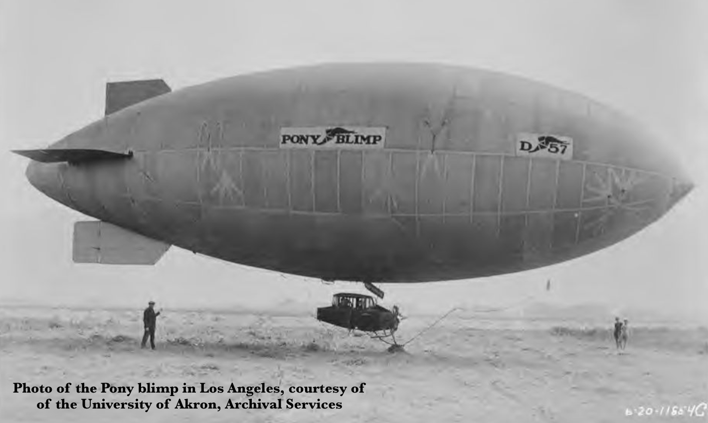 Ten years after that first Air Meet at Dominguez Rancho, Goodyear premiered its baby blimp, The Pony, first in San Francisco and then in Los Angeles. That summer of 1920, the Pony floated over Arcadia’s Ross Field, Lincoln Heights and docked at an aeronautical celebration at Venice Municipal Field.