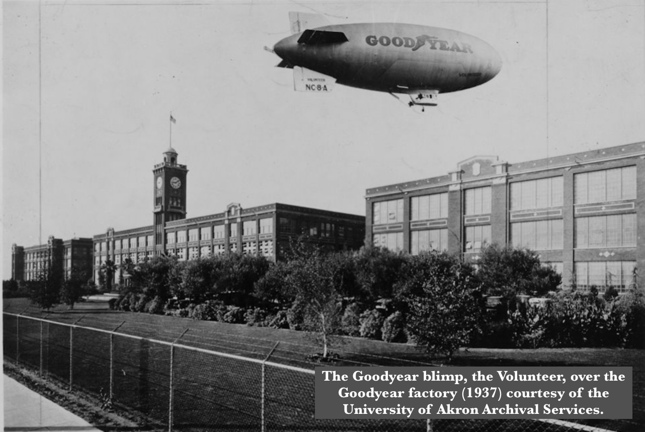 He would’ve been a little boy when his family lived in the neighborhood of the Goodyear factory. To a young kid, seeing this larger-than-life airship take flight so close to home must’ve left a big impression. Surely, the blimp’s shadow would’ve crossed over his playground/his front yard as he heard the mechanical hum fill the air.