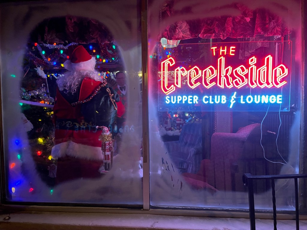 Dining at the Creekside Supper Club on Chicago Avenue felt like dining in Santa’s workshop. While this eatery formerly known as Pepito’s is not technically a historic spot, it’s situated next door to the historic Parkway Theatre, where my young mom and her family watched their Hollywood movies in the 1950s.