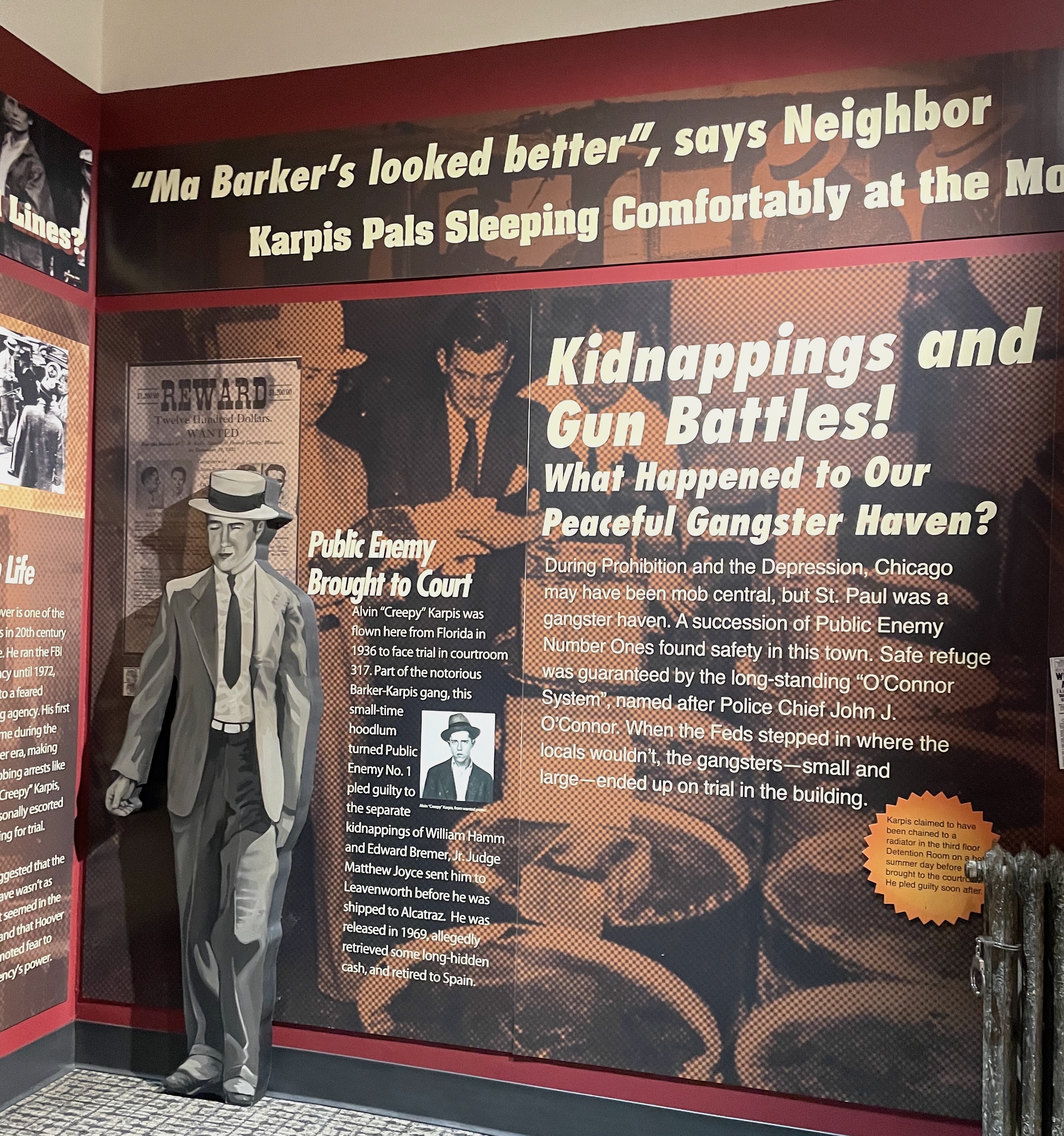 Below is an excerpt from the Landmark Center’s display as the basement was full of mobster stories: